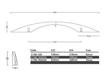 The C190- Brighton Cabinet Handle is a stunning addition to any modern space. This handle features a modern slimline wave contoured with an elegant arch design, creating a sense of flow and effortlessness. The smooth curves and sleek profile of the handle contribute to a clean and contemporary aesthetic, adding a touch of sophistication to your cabinets. With its graceful design, the C190- Brighton Cabinet Handle brings a sense of modern style and elegance to your home.