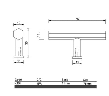 The K154 Dunlop Hexagon T Bar Knob is an epitome of style and functionality meticulously designed for modern and contemporary kitchens or bathrooms. Impeccably fashioned from top-tier brass, this knob embodies a marriage of form and function, offering a seamless hardware solution. Its hexagonal shape, a signature of the Dunlop collection, exudes a minimalist finesse that seamlessly injects sophistication into any environment.