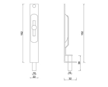 The T24 - Edge Flush Bolt is a meticulously designed solution for enhancing the security and convenience of your doors. This flush bolt is ingeniously crafted to be recessed into either the top or bottom of the door, seamlessly integrating into the door's edge or face.