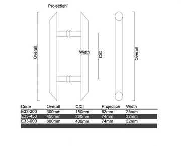 The E33 Two-Toned Straight Bar Entrance Handle is a captivating choice that combines sophistication and style. This handle features chamfered angles at each end, adding a touch of elegance to its sleek design. With a stunning combination of brushed and polished stainless steel, it effortlessly brings a sense of class to any setting.